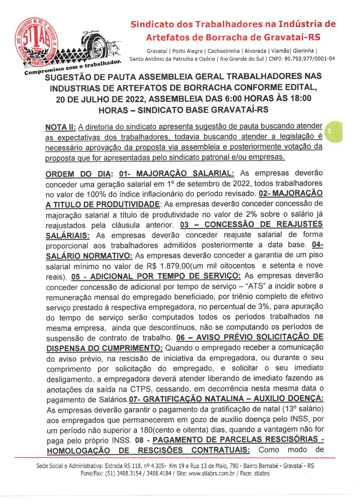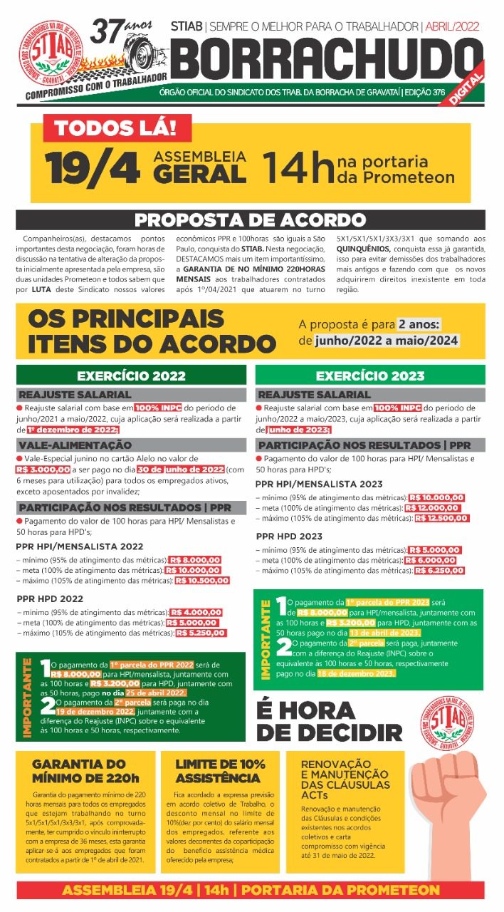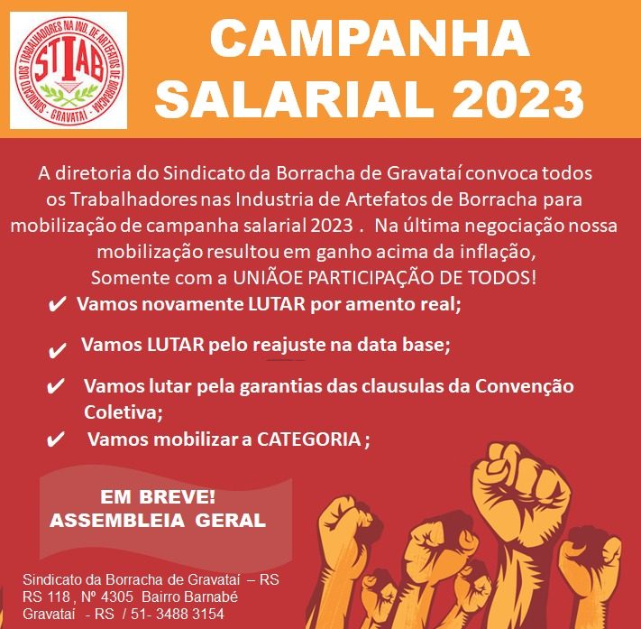 SINDICATO DA BORRACHA DE GRAVATAI DA INICIO A CAMPANHA SALARIAL 2022