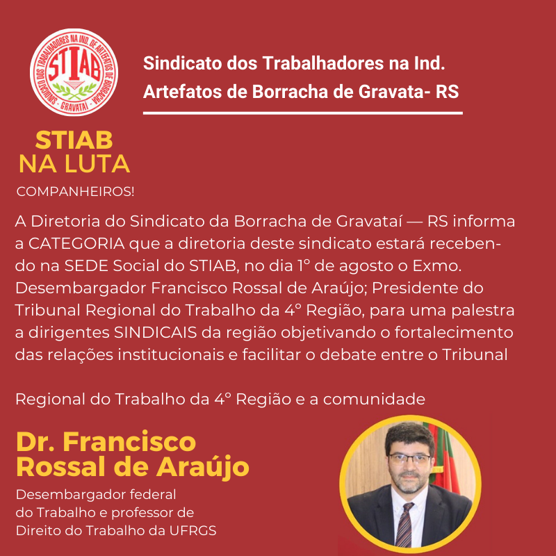 STIAB NA LUTA!COMPANHEIROS! A Diretoria do Sindicato da Borracha de Gravataí